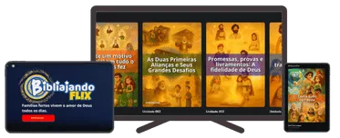 Você pode assistir ao BibliajandoFlix onde quiser: na TV, no computador, no tablet ou até mesmo no celular. A experiência foi pensada para se adaptar a qualquer tela — perfeita para reunir a família em qualquer lugar.